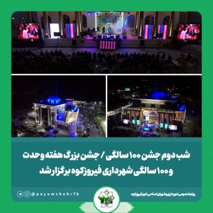 تاریخ خبر: 1404/6/19شب دوم جشن 100 سالگی / جشن بزرگ هفته وحدت و 100 سالگی شهرداری فیروزکوه برگزار شدبه گزارش روابط عمومی شهرداری و شورای اسلامی شهر فیروزکوه، همزمان با هفته وحدت، جشن بزرگ هفته وحدت و دومین شب جشن 100…ادامه مطلب