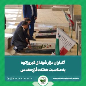 تاریخ خبر: 1404/7/3گلباران مزار شهدای فیروزکوه به مناسبت هفته دفاع مقدسهمزمان با فرارسیدن هفته دفاع مقدس، مزار شهدای شهرستان فیروزکوه، گلباران و عطرافشانی شد. به گزارش روابط عمومی شهرداری و شورای اسلامی شهر…ادامه مطلب