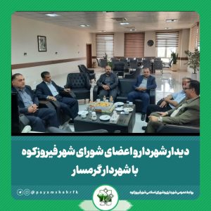 تاریخ خبر: 1404/4/22دیدار شهردار و اعضای شورای شهر فیروزکوه با شهردار گرمساربه گزارش روابط عمومی شهرداری و شورای اسلامی شهر فیروزکوه، علیرضا صادقی شهردار فیروزکوه به همراه اعضای شورای اسلامی شهر با حضور در…ادامه مطلب