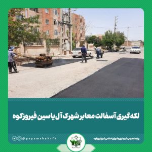 تاریخ خبر: 1404/4/21لکهگیری آسفالت معابر شهرک آلیاسین فیروزکوهبه گزارش روابط عمومی شهرداری و شورای اسلامی شهر فیروزکوه، عملیات لکهگیری و مرمت موضعی آسفالت در معابر شهرک آلیاسین (دشت ناصر) توسط…ادامه مطلب