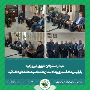 تاریخ خبر: 1404/4/7دیدار شهردار و اعضای شورای شهر فیروزکوه با رئیس دادگستری و دادستان به مناسبت هفته قوه قضائیهبه گزارش روابط عمومی شهرداری و شورای اسلامی شهر فیروزکوه، به مناسبت گرامیداشت هفته قوه قضائیه، علیرضا صادقی شهردار فیروزکوه به همراه اعضای…ادامه مطلب